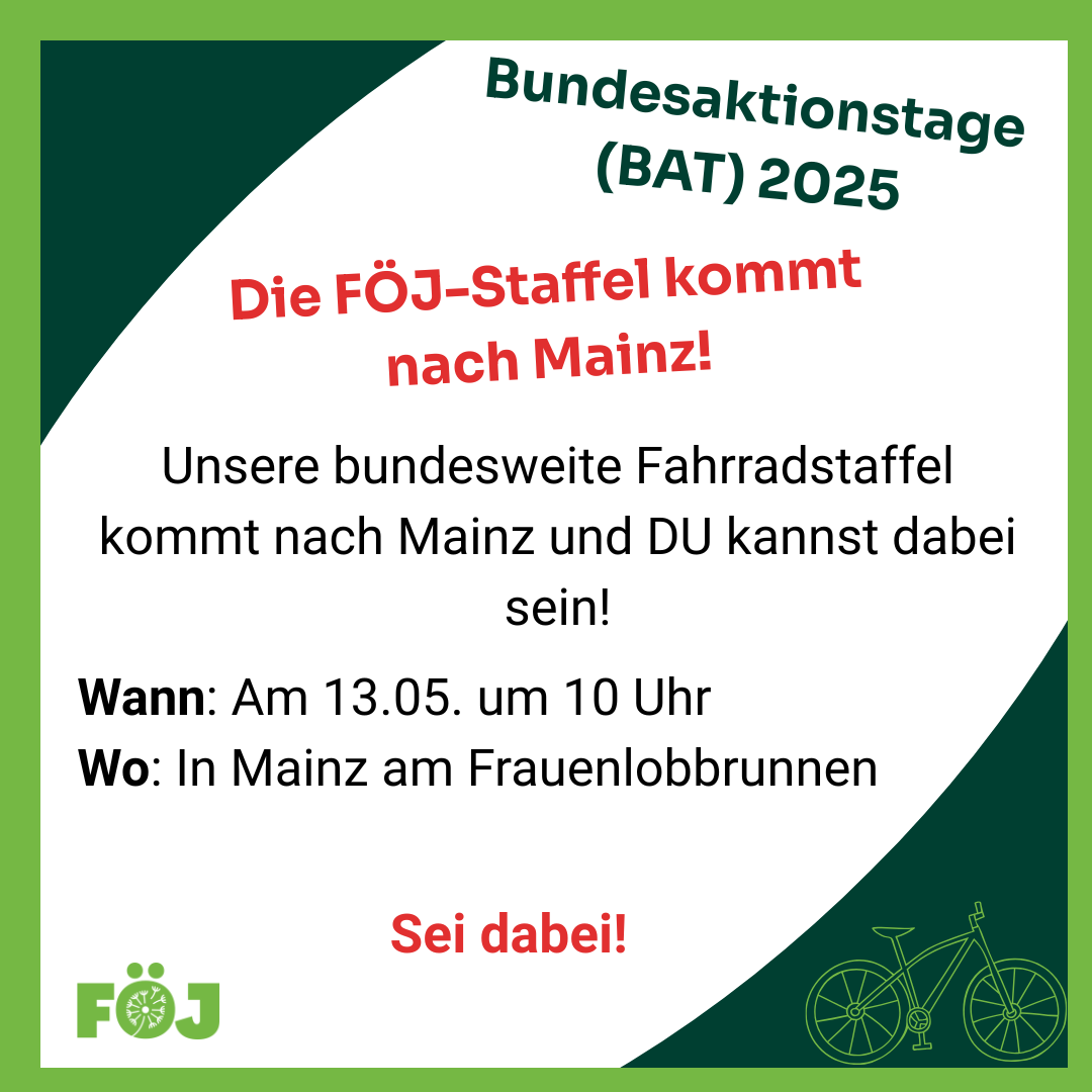 Der diesjährige FÖJ-Bundesaktionstag (BAT) ist eine große Fahrrad-Staffel quer durch Deutschland zum Motto „Freie Fahrt für Freiwillige“. Es fahren…